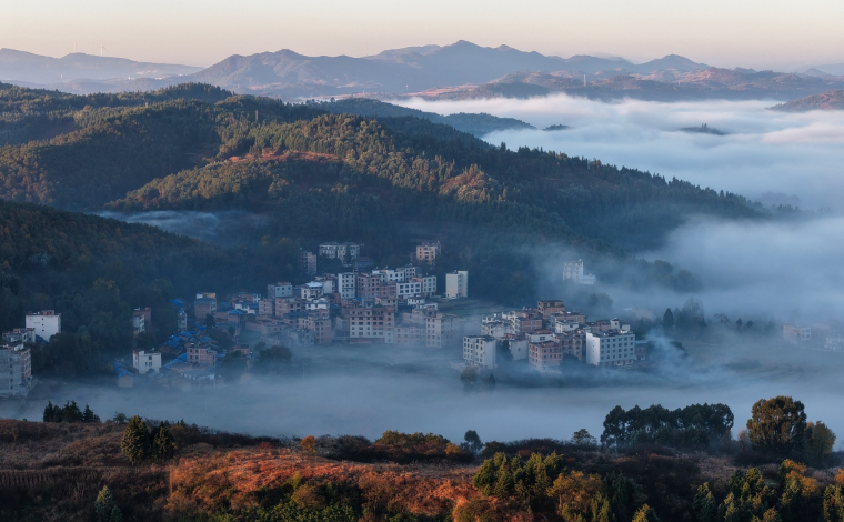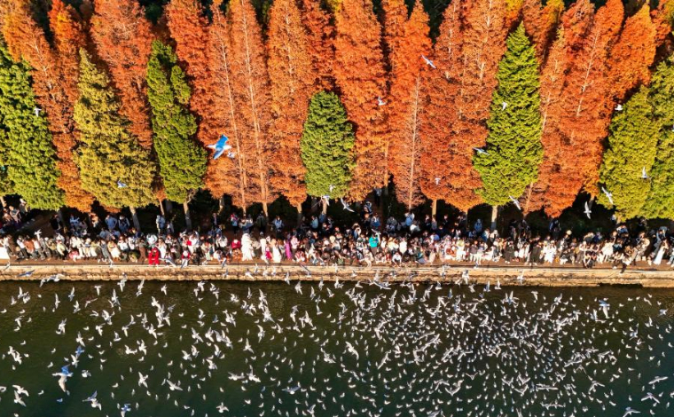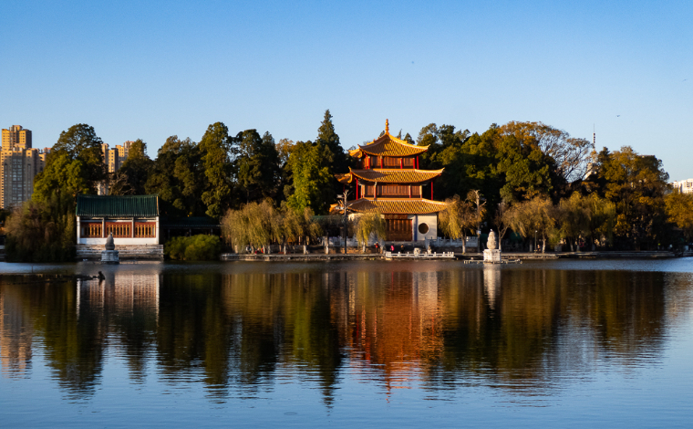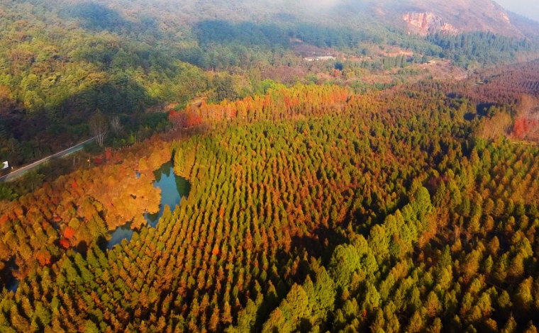 初冬,在云南省昭通市昭陽(yáng)區(qū)省耕國(guó)學(xué)文化公園里,層林之中,亭臺(tái)上的飛檐翹角與五彩葉片相映,色彩斑斕,充滿(mǎn)詩(shī)意,宛如畫(huà)卷。