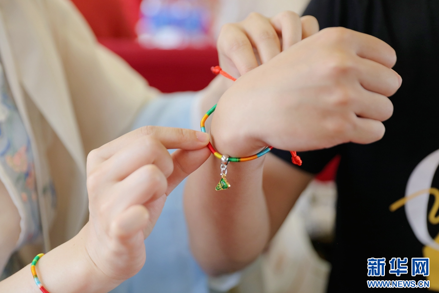 乘客佩戴五彩绳(摄于6月20日)。新华网发(杨紫轩 摄)