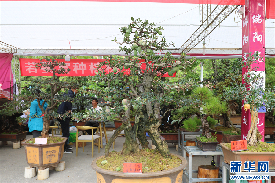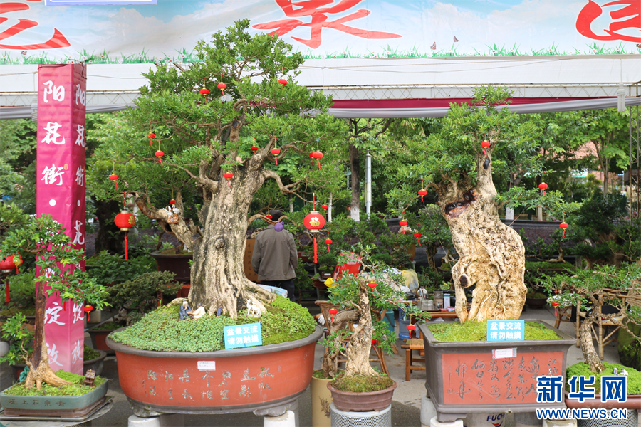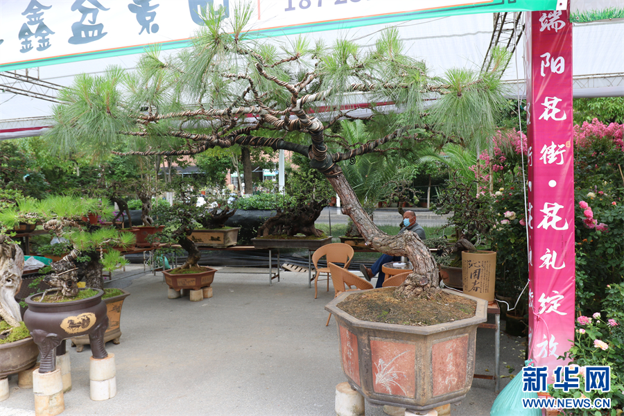 花街上展出的盆景(6月22日 摄)。邵维岑 摄