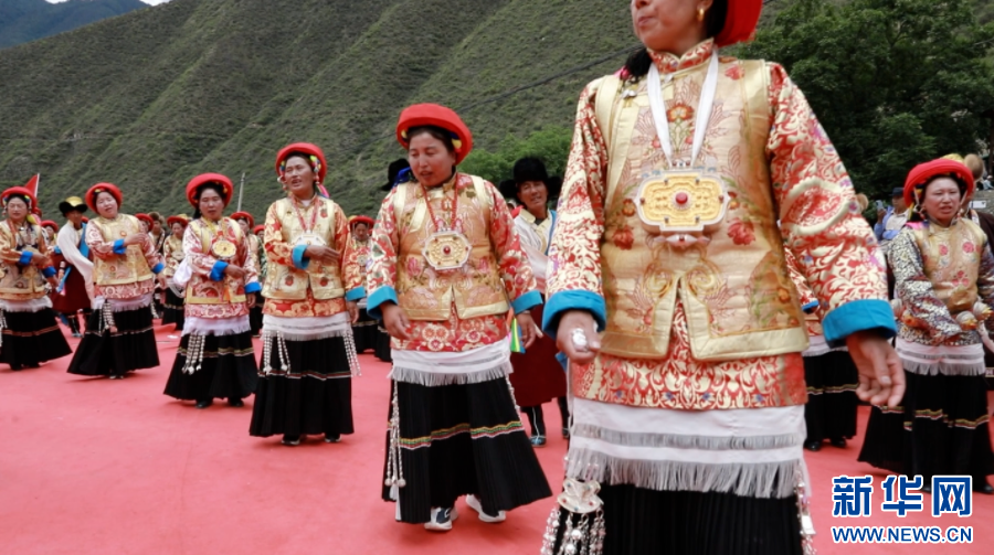 6月20日,在云南省迪庆藏族自治州德钦县霞若乡,上千人一同跳起藏族民间舞蹈锅庄,场面热闹而宏大。(完)(德钦县融媒体中心 扎史江初 李春雷)