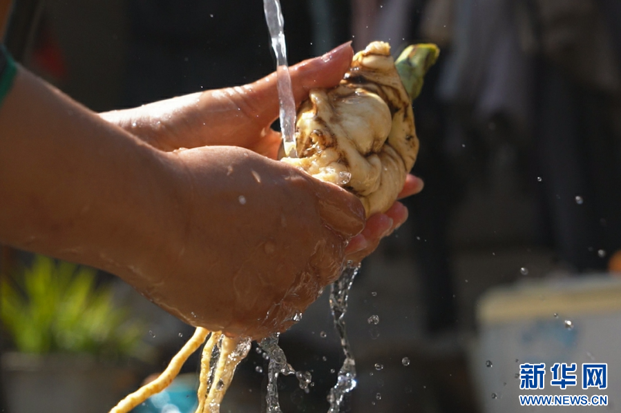 清洗药材(6月21日摄)。新华网发(罗宁姣 摄)