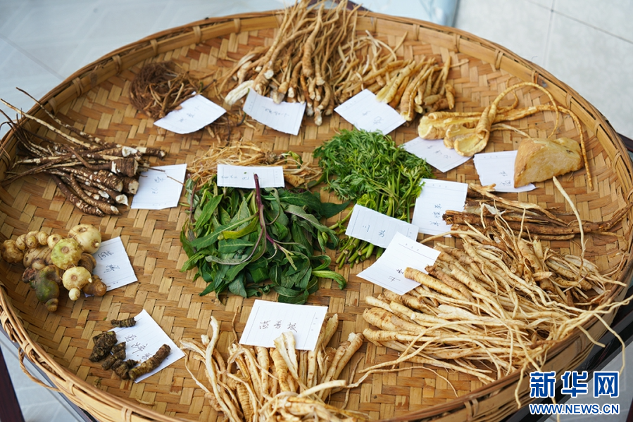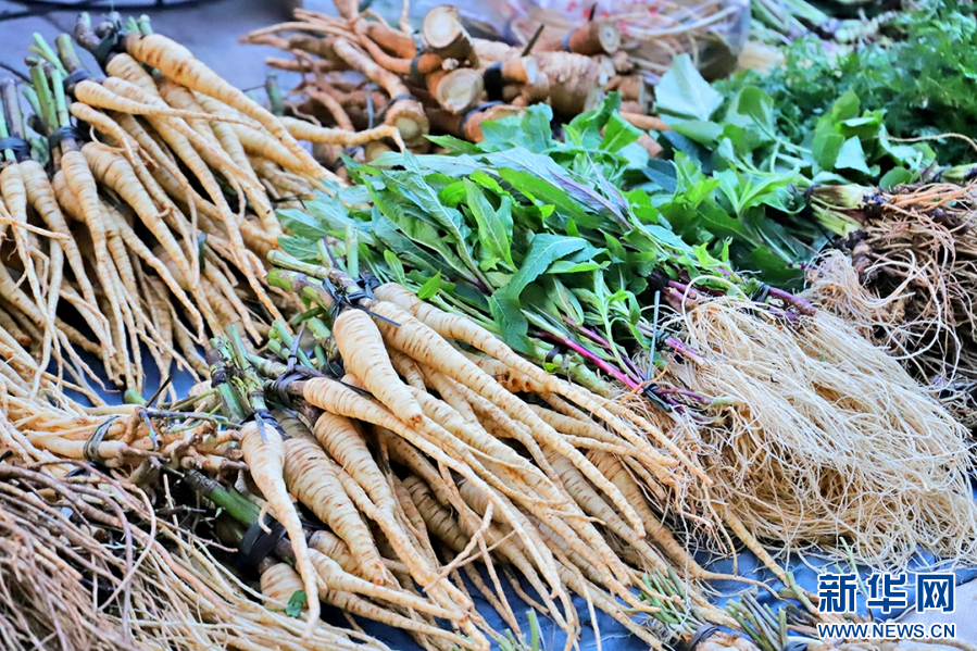 村民在集市售卖草药(6月20日摄)。新华网发(穆星洁 摄)
