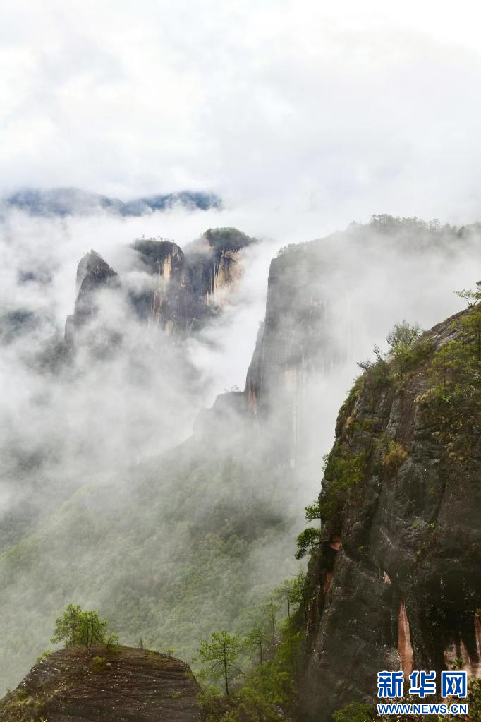 近日,位于云南省丽江市玉龙县境内的老君山黎明景区,雨后云雾缭绕,群峰在云中若隐若现,梦幻缥缈,蔚为壮观。