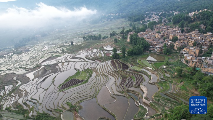 5月7日拍摄的元阳哈尼梯田核心区的坝达梯田(无人机照片)。新华社记者 刘诗平 摄