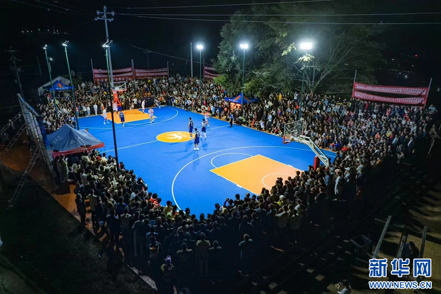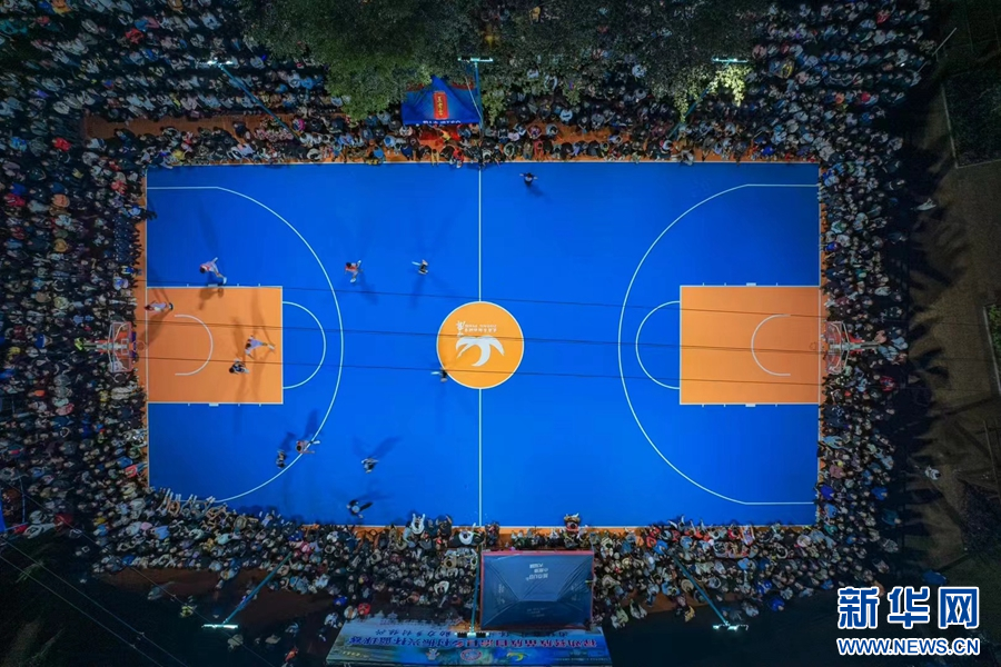 篮球比赛点燃夏日热情(6月24日摄)。新华网发(中屏镇人民政府 供图)