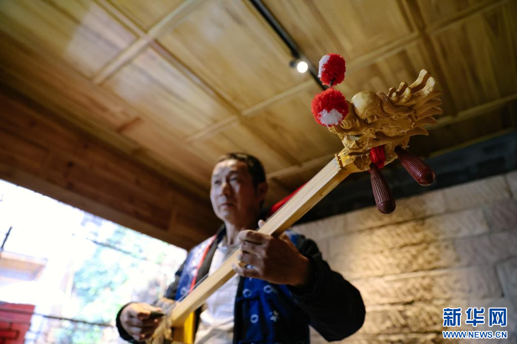 大本曲是白族特有的古老民间技艺(6月14日摄)。新华网发 (胡妤雅 摄)