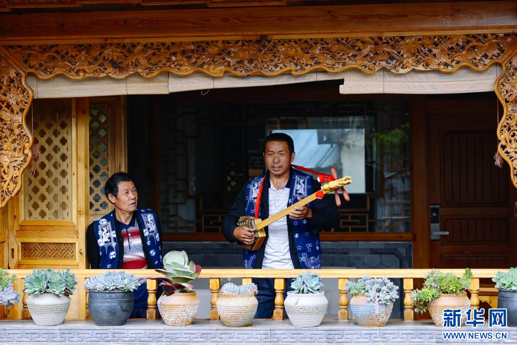 白族大本曲弹唱(6月14日摄)。新华网发 (胡妤雅 摄)