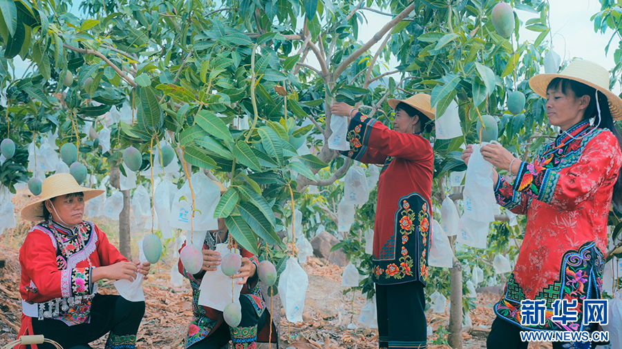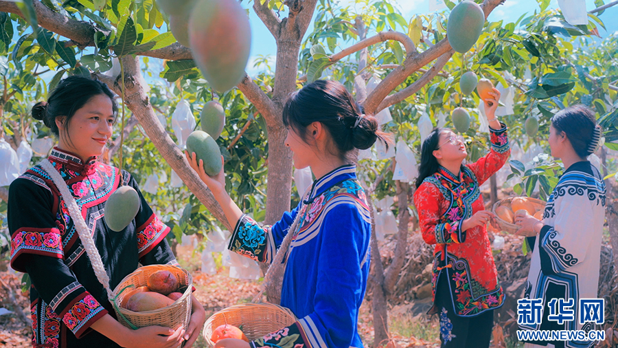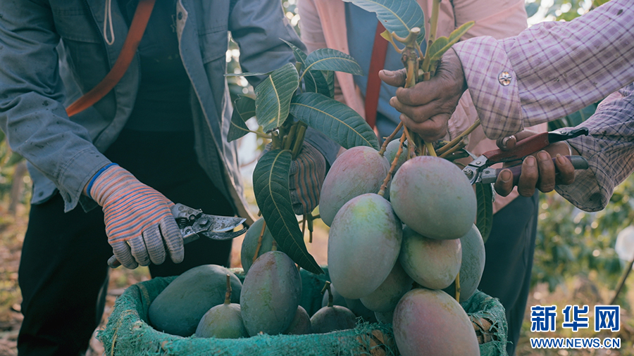 村民采摘芒果(摄于6月18日)。新华网发(武学成 摄)