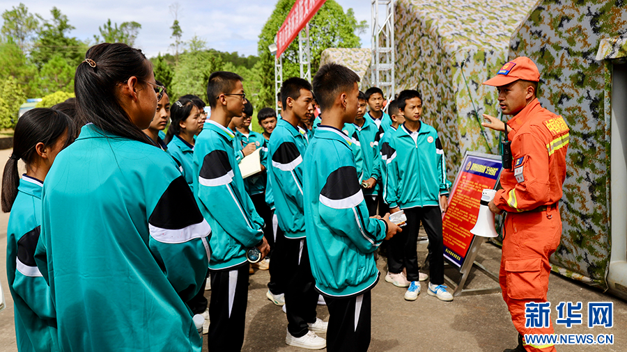 森林消防员讲授安全教育知识(摄于6月29日)。新华网发(云南省森林消防总队保山支队供图)