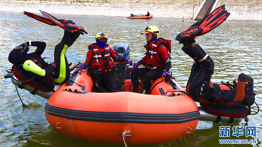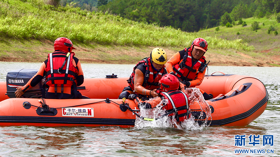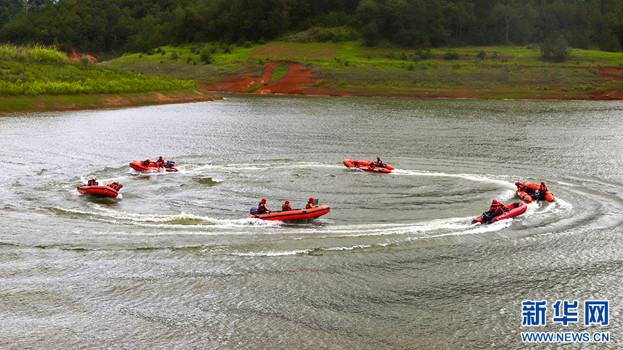 森林消防员开展水域救援训练(摄于6月29日)。新华网发(云南省森林消防总队保山支队供图)