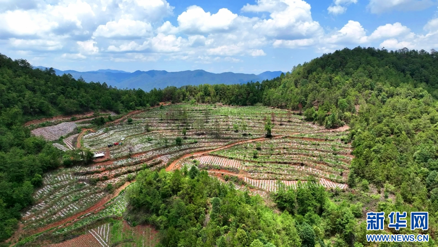 航拍镜头下金银花种植基地(6月28日摄)。新华网发(苏波 摄)