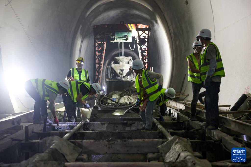 7月8日,在滇藏铁路丽香段哈巴雪山隧道内,建设者进行施工。新华社记者 丁怡全 摄