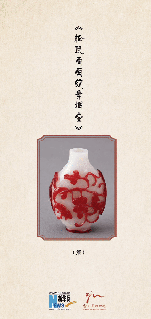 (清)白地套红料松鼠葡萄纹鼻烟壶