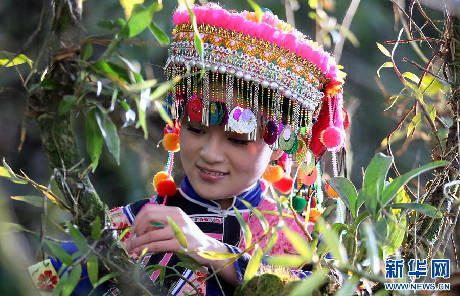 傈僳族少女采摘石斛(资料图)。新华网发(保山市委宣传部 供图)