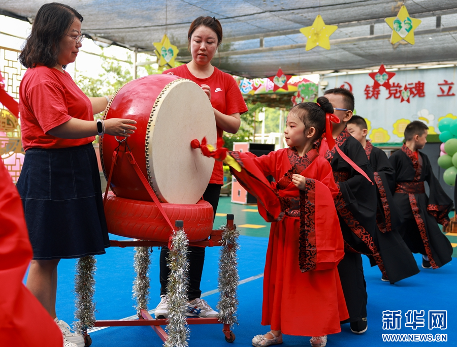 7月14日,云南省红河哈尼族彝族自治州开远市第二幼儿园为即将毕业的小朋友们举行了传统“开笔礼”仪式,通过朱砂启智、击鼓明志、启蒙描红等环节,让即将步入小学的孩子们体验传统文化,“破蒙启智,人生始立”,为未来的求学生涯树立一个有意义的起点。(刘雅龙)