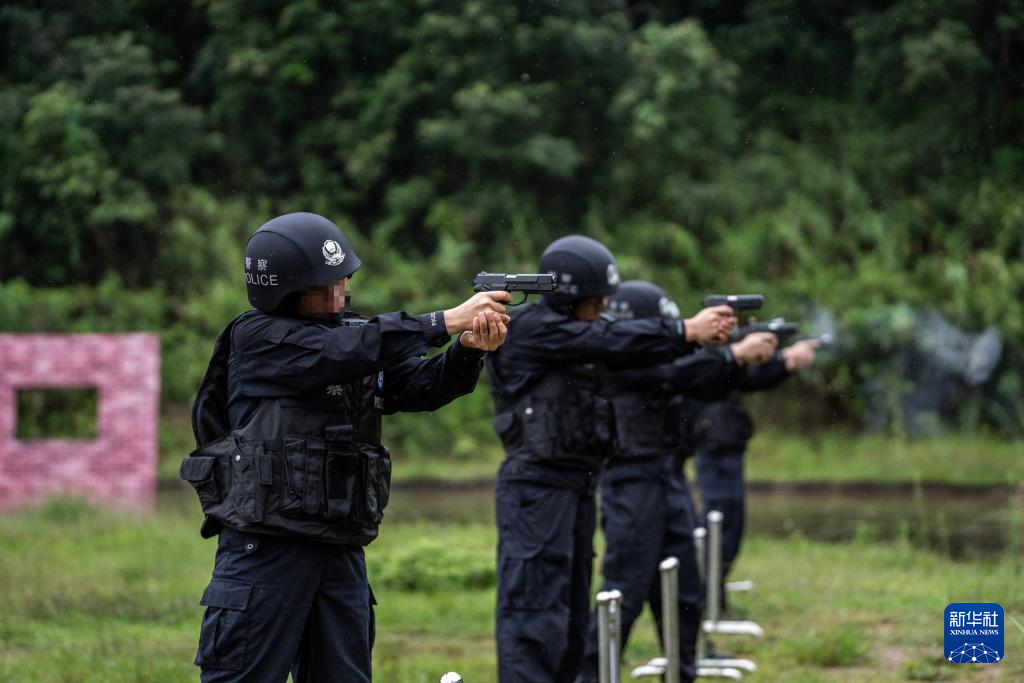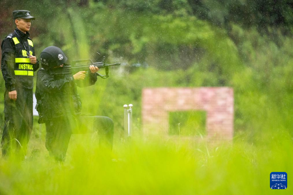 7月13日,尹铭燕(前)和战友在进行射击训练。