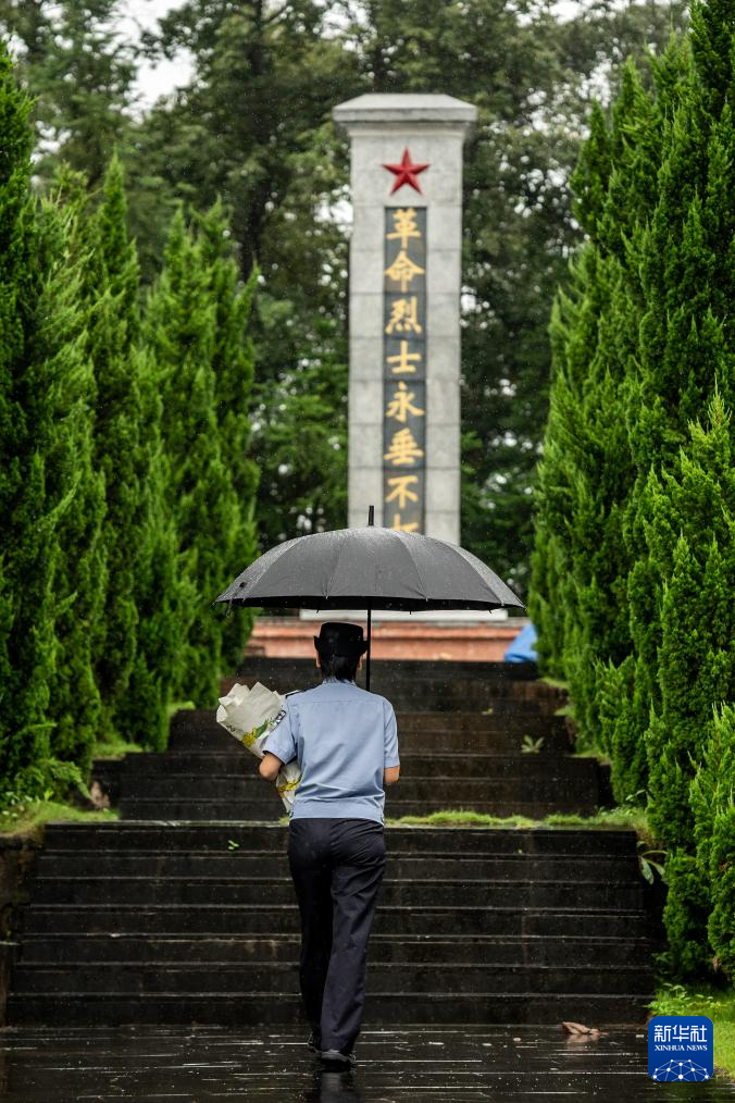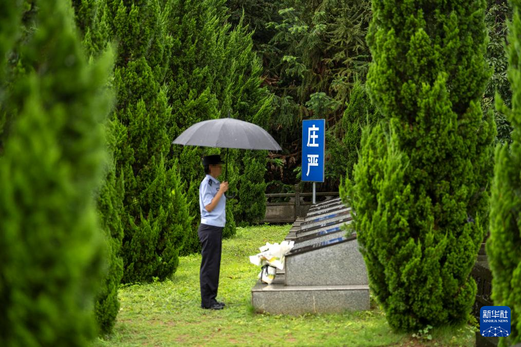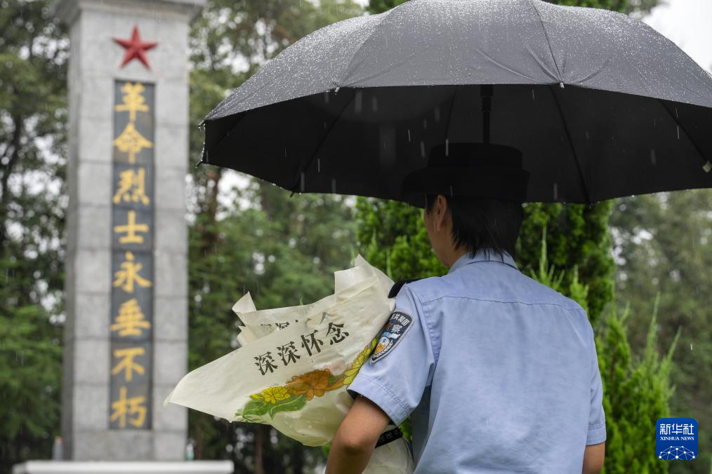 雨中,一把黑伞,一束白花,一身警服的尹铭燕拾级而上,走向云南德宏州陇川县烈士陵园的最高处,那里长眠着她的哥哥尹铭志。