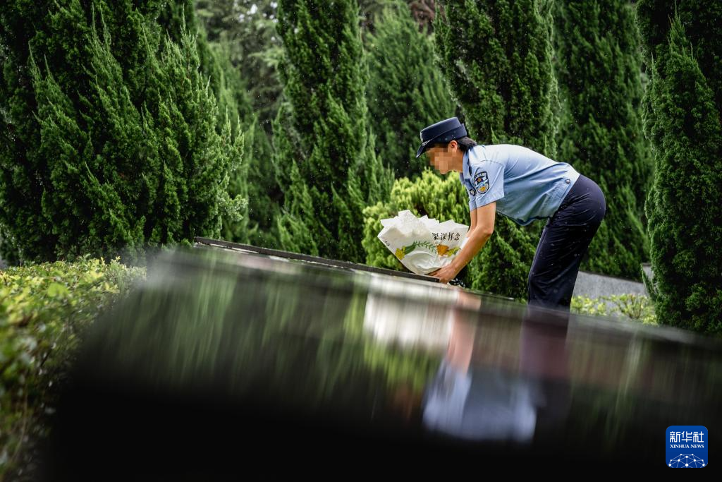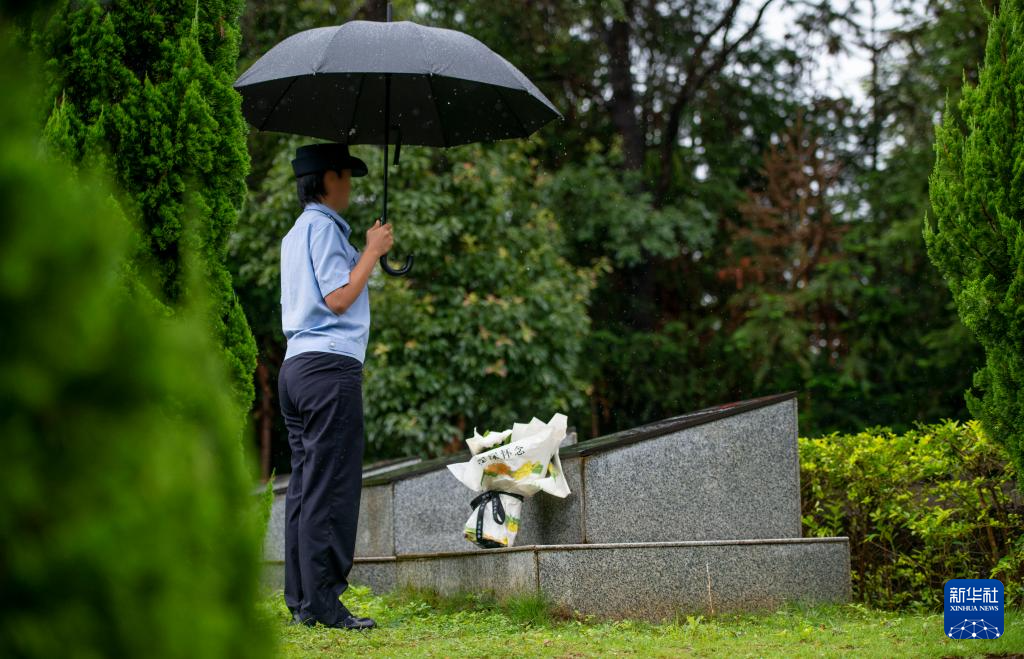 7月12日,在陇川县烈士陵园,尹铭燕向哥哥尹铭志的墓献花。