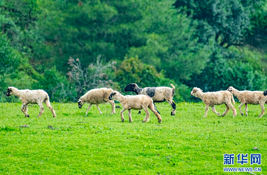 草原上的绵羊(7月8日摄)。新华网发(郭康 摄)
