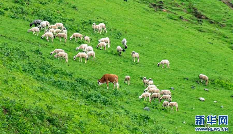 草原上的牛羊(7月8日摄)。新华网发(郭康 摄)