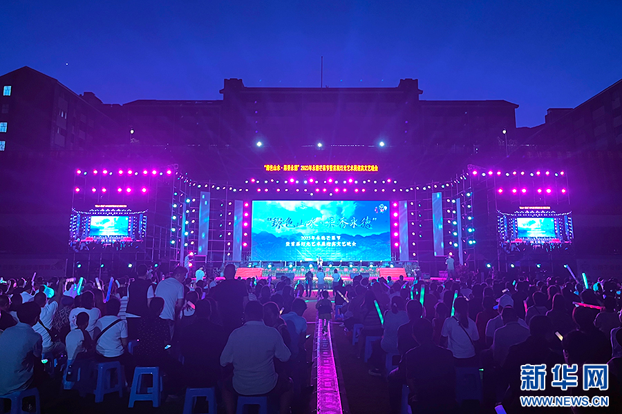 永德县芒果节开幕式文艺晚会(7月15日摄)。新华网发(赵子垚 摄)