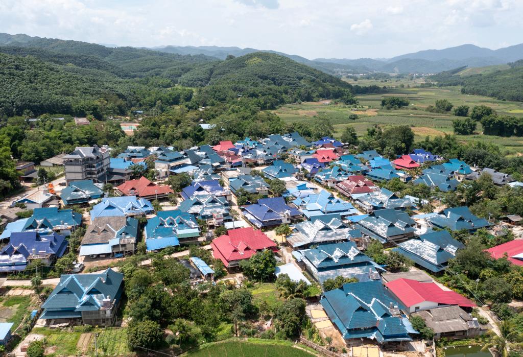 ↑这是依波逢外婆家所在的勐腊县勐伴镇纳卡村一景(7月16日摄,无人机照片)。