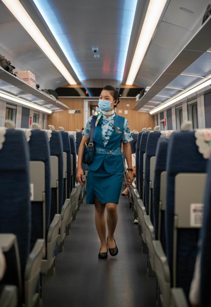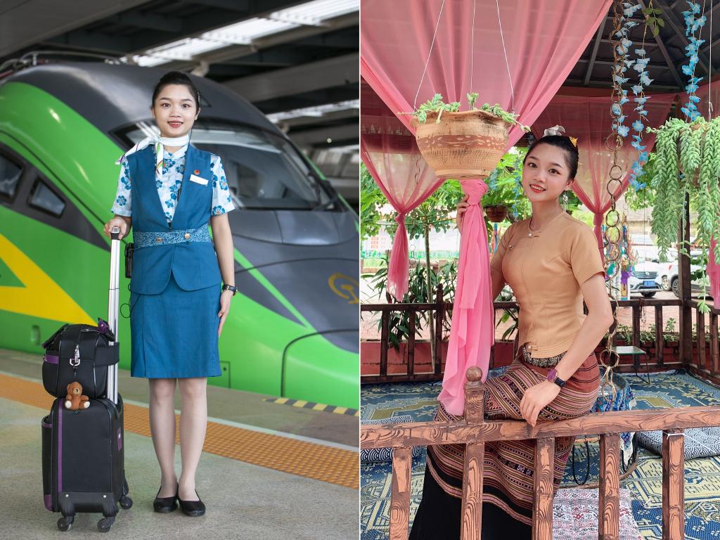 “我开心又激动,因为自己学的就是老挝语,可以发挥擅长的语言,把所学专业运用到工作当中。”回忆起成为中老铁路列车员的那一刻,依波逢至今很兴奋,“然后想到我的家乡勐腊,更激动,因为回家更方便了。”