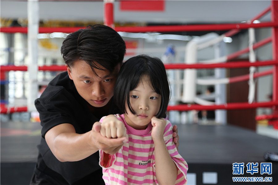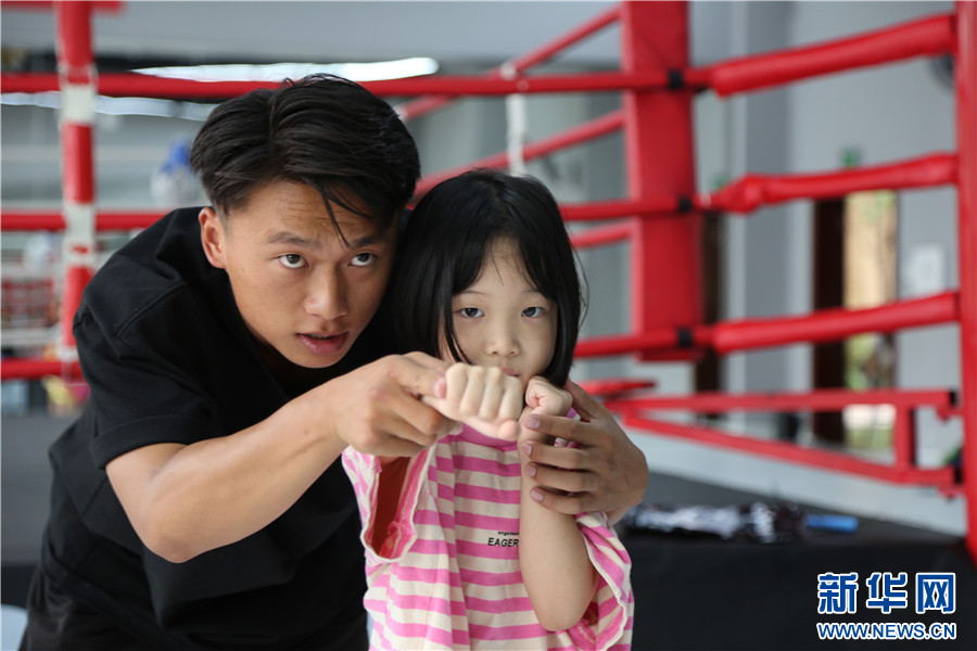 正值暑假,在云南省红河哈尼族彝族自治州蒙自市,孩子们在红河州青少年宫搏击运动馆学习搏击,放松身心,强健体魄,乐享假期生活。新华网发(薛莹莹 摄影报道)