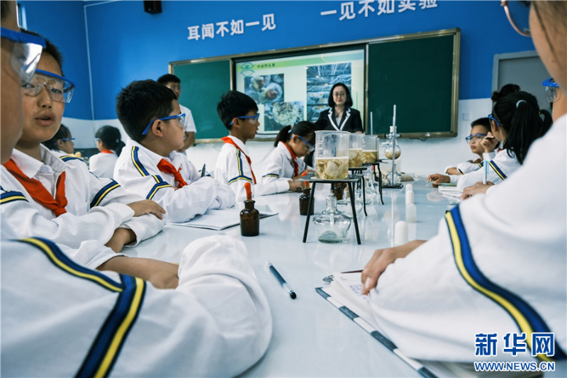 教室里,孩子们提取野生菌精油、观察野生菌菌包