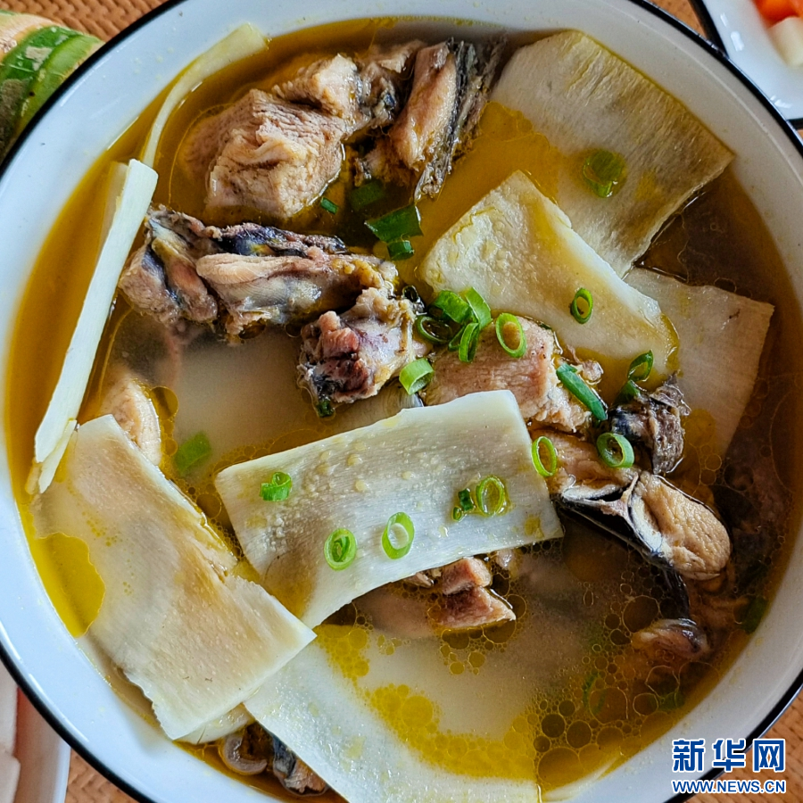 甜笋炖土鸡(7月13日摄)。新华网发(昌宁县融媒体中心摄)