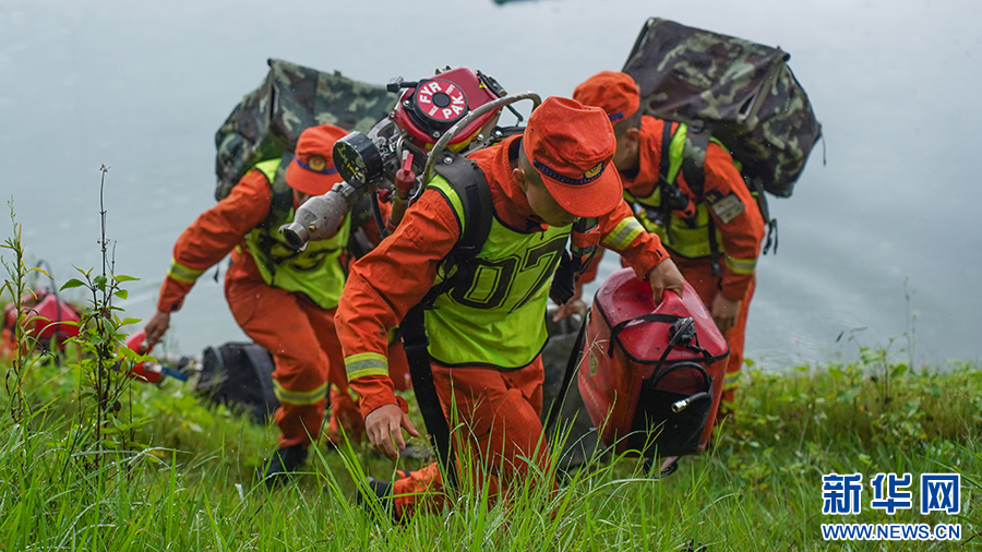 野外水泵架设与撤收(摄于7月22日)。新华网发(戈鑫 摄)