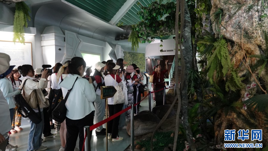 师生们参观热带雨林民族文化博物馆(7月23日摄)。 新华网发(岩罕丙 摄)
