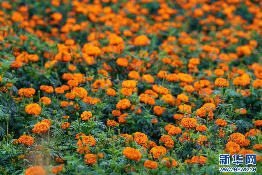 成片盛开的万寿菊(7月24日摄)。新华网发(李星 摄)
