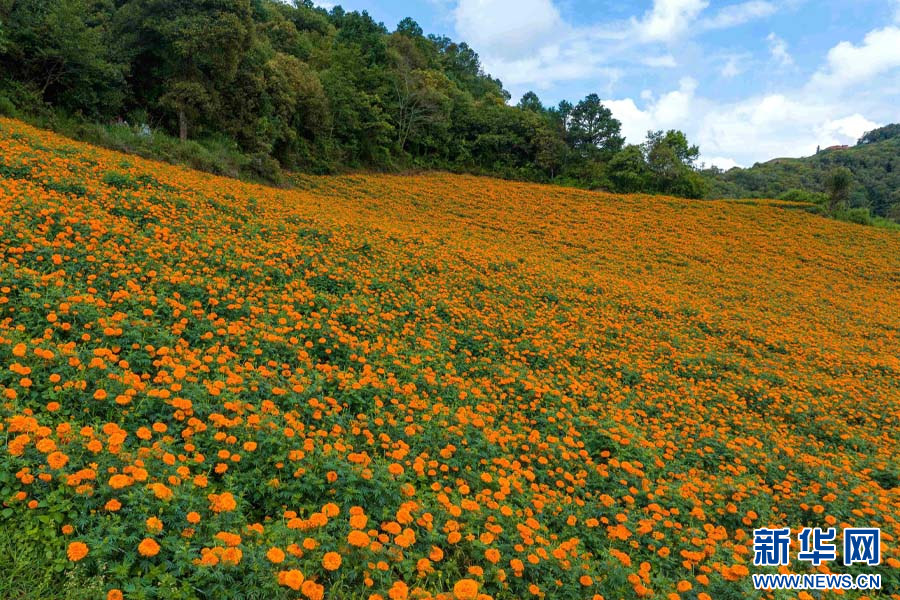 盛开的万寿菊花海(7月24日摄)。新华网发(李星 摄)