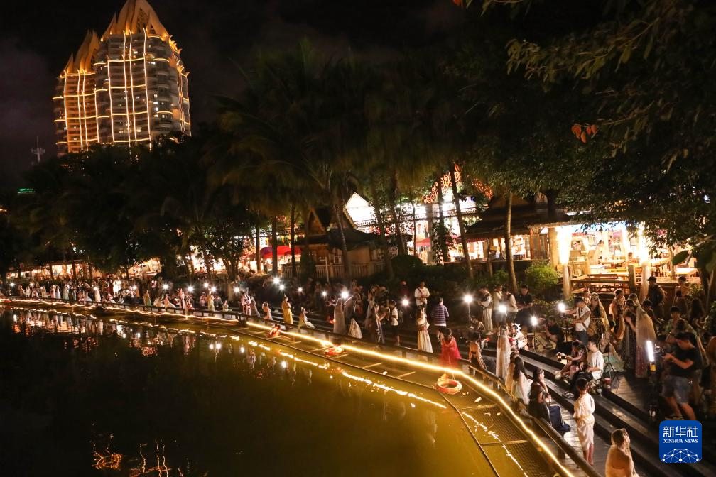 7月29日深夜,游客在云南省景洪市告庄西双景景区旅拍。新华社发(李云生 摄)