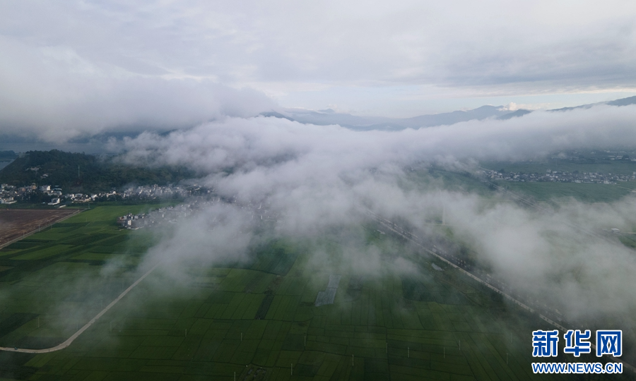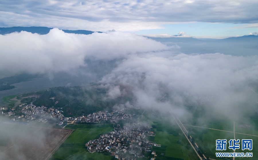 云海之上,瞰大美洱源(摄于7月23日)。新华网发(罗新才 摄)