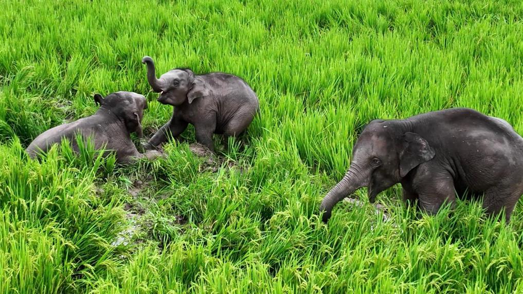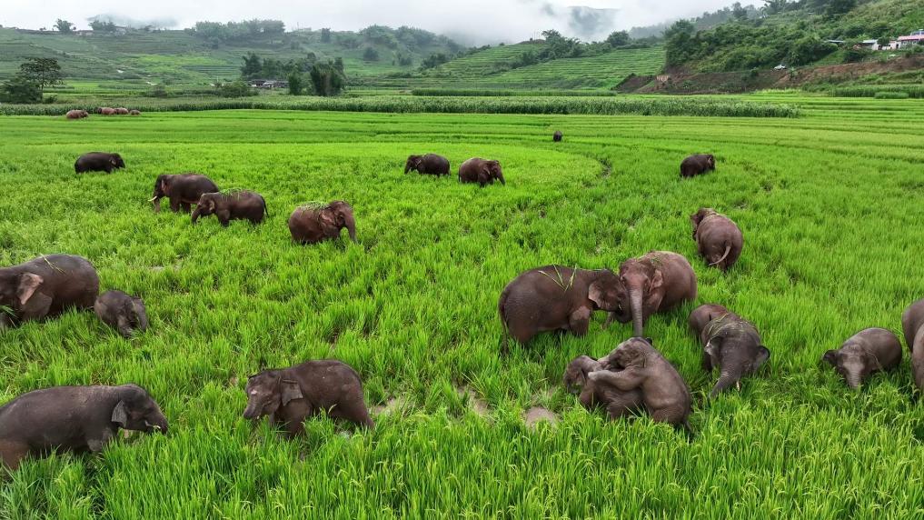 近日,记者在云南省普洱市江城哈尼族彝族自治县拍摄到一群亚洲象在稻田里集体觅食的视频,经过清点,在这片区域觅食的亚洲象共有30余头。