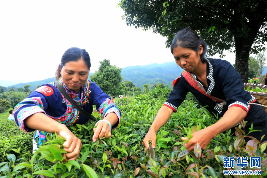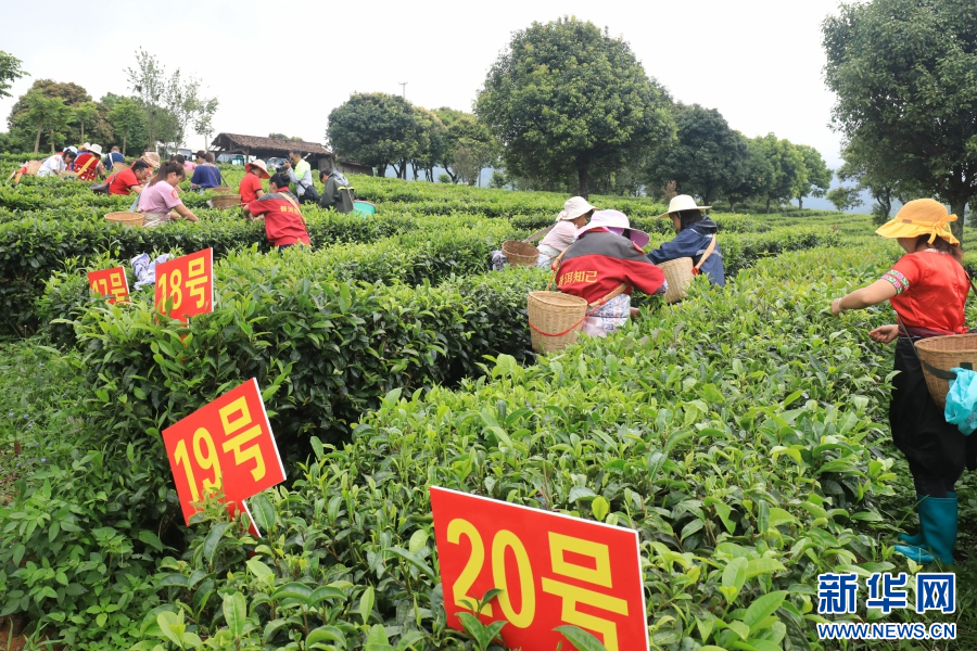 茶叶采摘竞赛现场(8月4日摄)。新华网发(宁洱县融媒体中心供图)