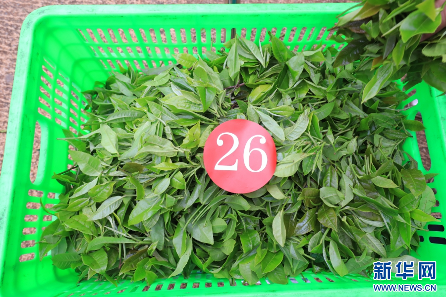 参赛选手采摘的茶叶(8月4日摄)。新华网发(宁洱县融媒体中心供图)
