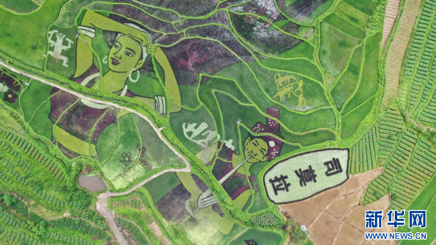 司莫拉的彩色稻田(8月2日 摄)。新华网发(赵杰仁 摄)