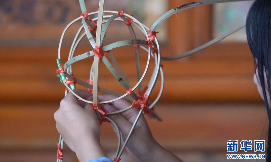 杨飞梧正在扎制火把(摄于7月28日)。新华网发(罗新才 摄)