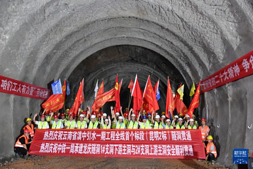 云南省滇中引水工程一期工程全线首个标段(昆明2标)隧洞贯通现场。中铁一局集团供图