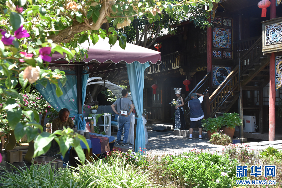 丽江古城赵公馆里旅拍的客人(8月14日摄)。新华网发(陈俊佳 摄)