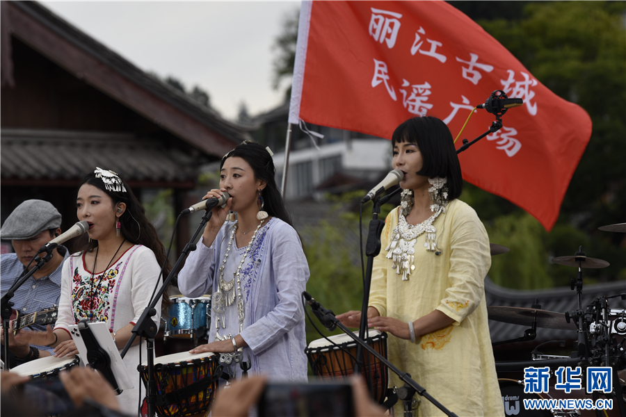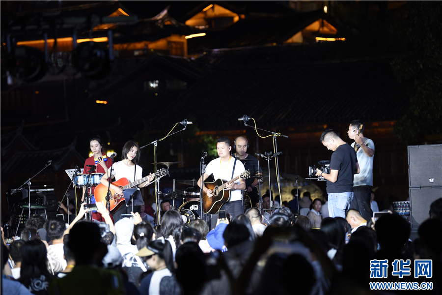 “丽江古城民谣广场”现场(8月18日摄)。新华网 李宁 摄