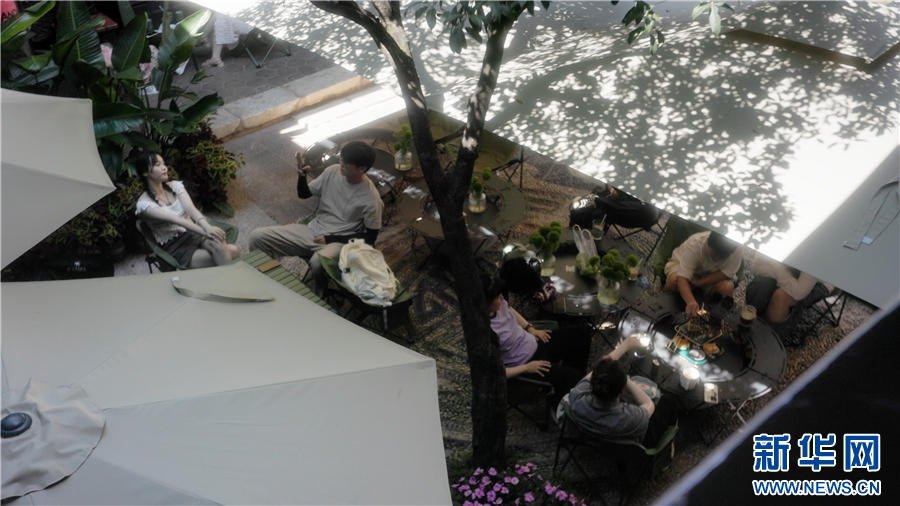 屋顶咖啡院子里休闲的客人(8月14日摄)。新华网发(刘东 摄)