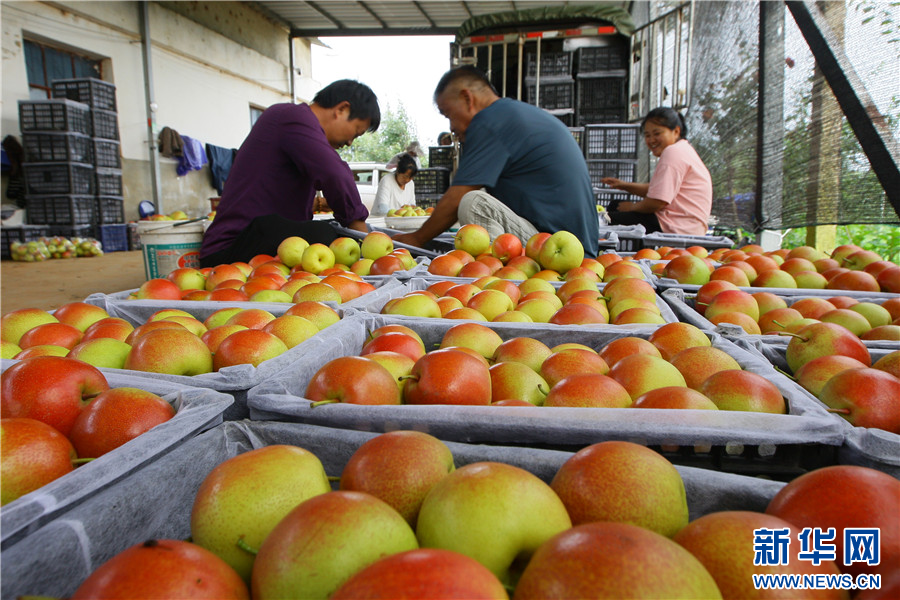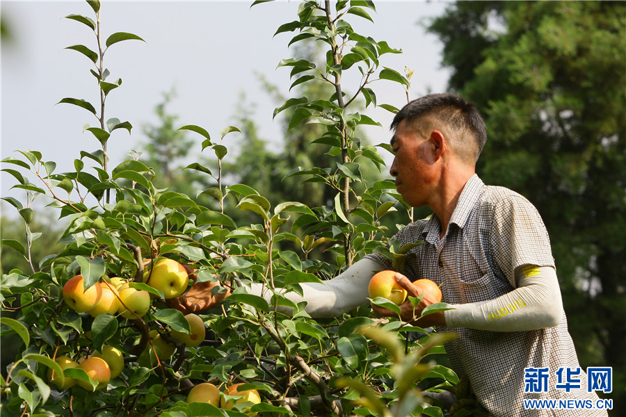 8月16日,云南省曲靖市沾益区大坡乡大坡村一处果园内,果农采摘美人酥红梨。