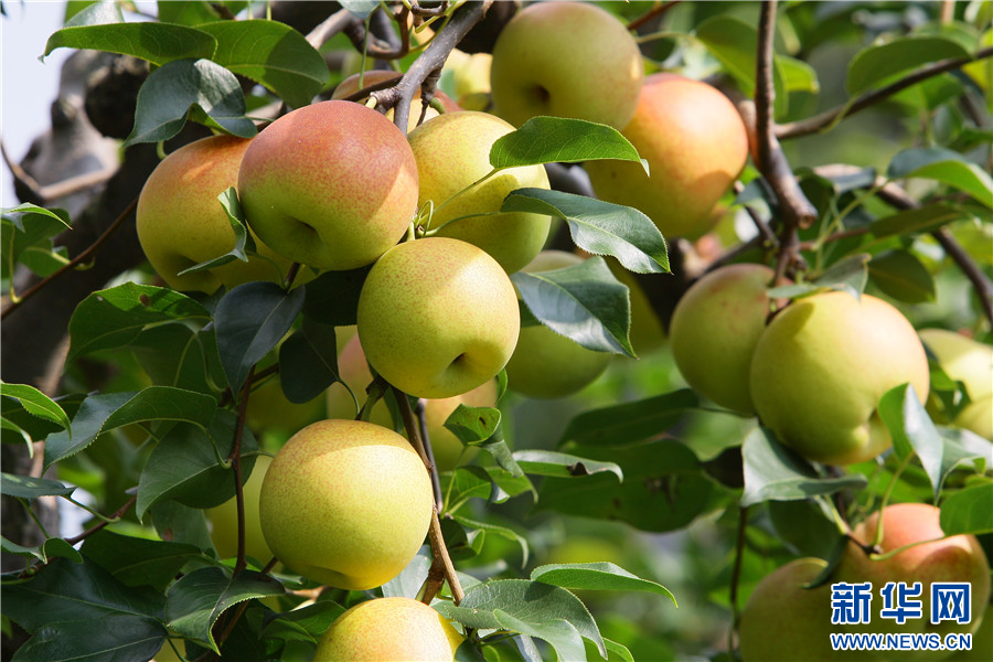 8月16日,云南省曲靖市沾益区大坡乡大坡村一处果园内,果树上挂满美人酥红梨。