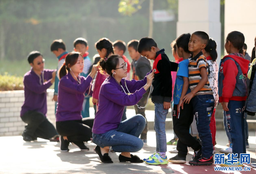 云南阜外心血管病医院筛查队员为边远山区小学进行先心病筛查。新华网发(供图)