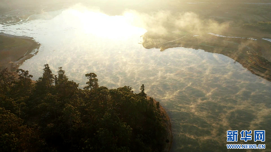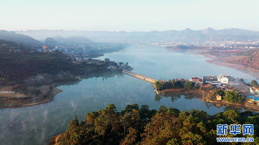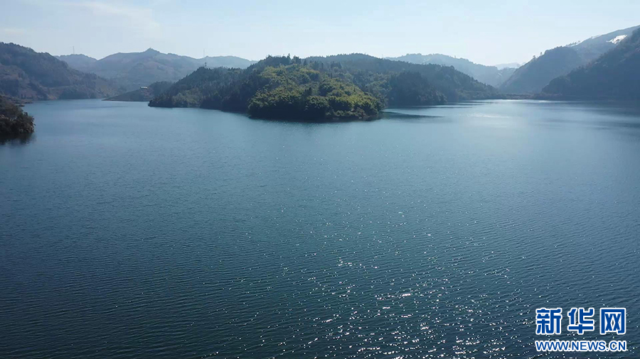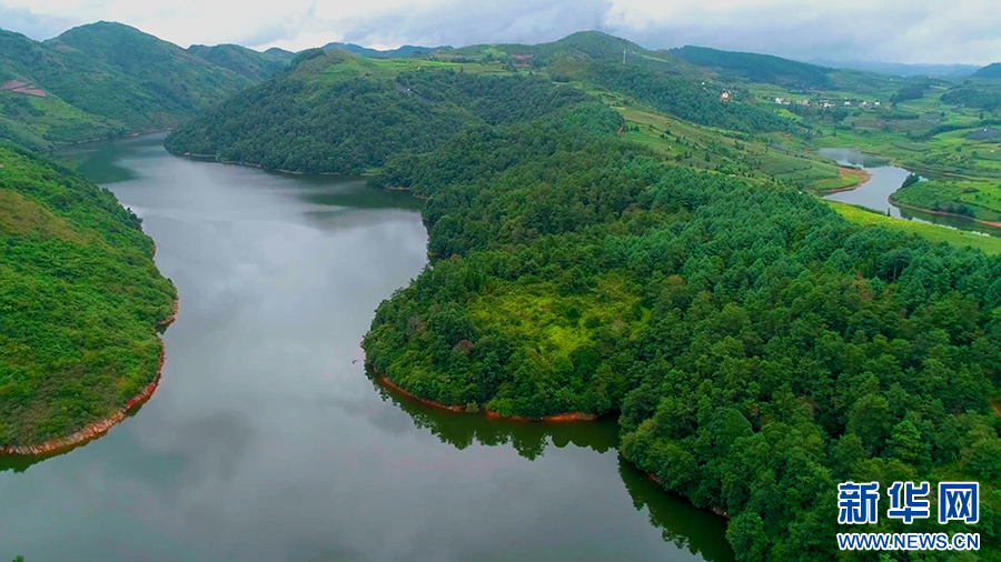 俯瞰蒙自五里冲水库(摄于8月10日)。新华网发(曹凡喜 摄)