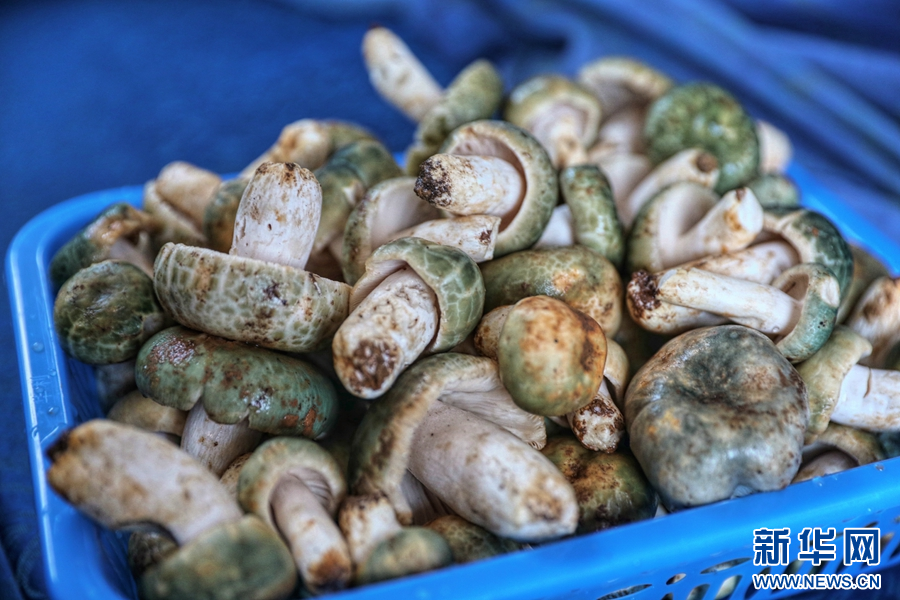 车厢内摆放的新鲜野生菌(摄于8月24日)。新华网发(杨紫轩 摄)